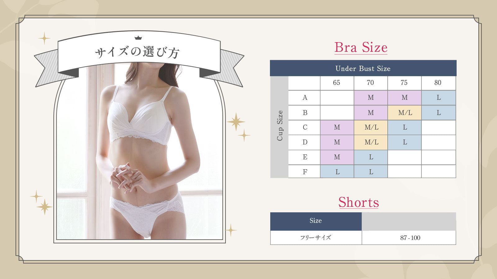※ブラジャーのサイズに関しては、画像内のサイズガイドを参照ください。